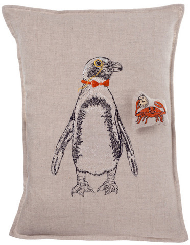 coral and tusk penguin pillow